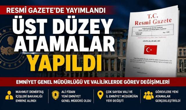 Atama kararları, Başkan Recep Tayyip Erdoğan'ın imzasıyla Resmi Gazete'de yayımlandı. Buna göre; Aydın, Ankara, Adıyaman ve Nevşehir valileri değişti. Emniyet Genel Müdürü ve 7 ilin emniyet müdürü de değişti.